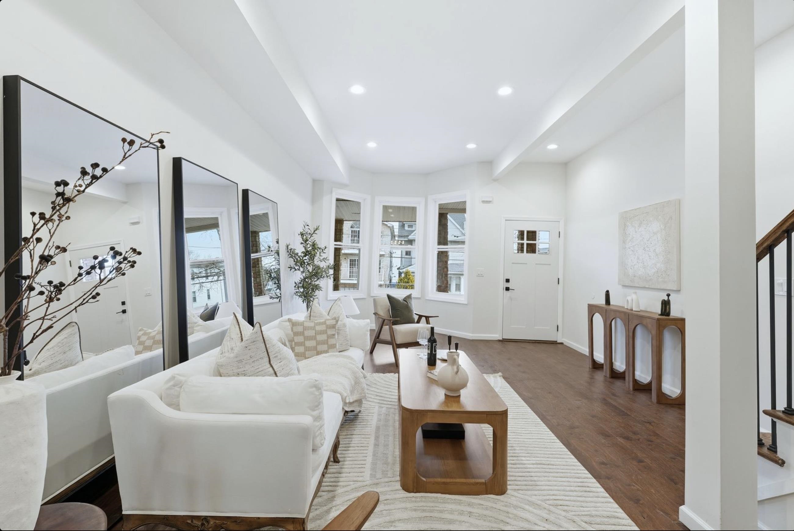 Welcome to your gut-renovated Victorian townhome in the sought-after Bergen-Lafayette section of Jersey City - just minutes from Manhattan and a 7-minute walk to the Light Rail. This oversized, custom single-family home offers a spacious parlor level designed for hosting, featuring an open-concept living and dining area anchored by a striking green powder room for guests. From there, you're led into a brand-new chef's kitchen outfitted with stainless steel appliances, a custom three-seat island with a built-in microwave drawer, and clean, modern finishes - opening directly to a large patio and private yard for seamless indoor/outdoor living. Timeless character meets modern design throughout, with skylights, beautiful south/east exposures, and oversized front-facing windows that flood th...