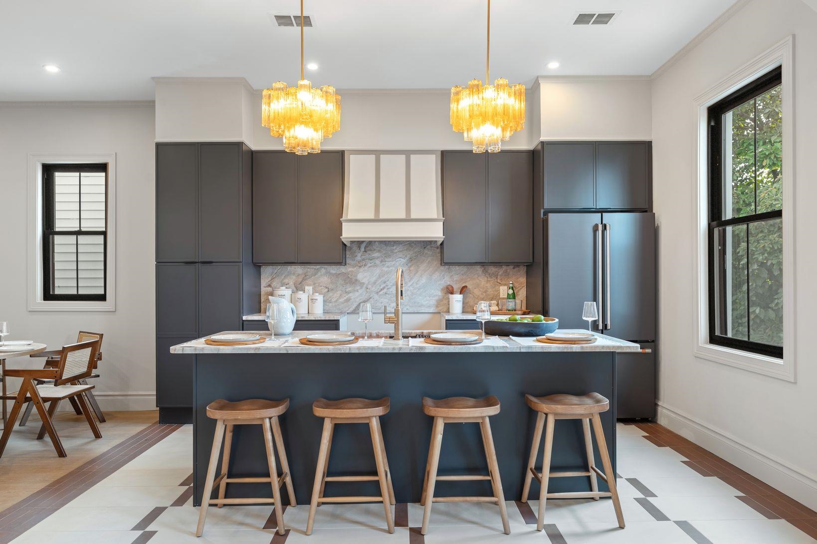 On tree-lined Liberty Place in Weehawken, a boutique three-bedroom, two-bath condominium reimagines what it means to live beautifully along the Hudson. Developed by the acclaimed CJ Investment Group, with interiors envisioned by designer Kathy Samaan, this residence blends intelligent layouts with bespoke craftsmanship at every turn. Sunlight fills expansive great rooms, where custom millwork and statement lighting create a sense of timeless sophistication. The kitchen commands attention with sleek cabinetry, a matte-black GE Cafe appliance suite, striking leathered granite countertops, and a large center island with seating--perfectly designed for both culinary creativity and casual gatherings. Designer tilework curated from Bedrosians, TileBar, and Edward Martin lends a refined tone t...